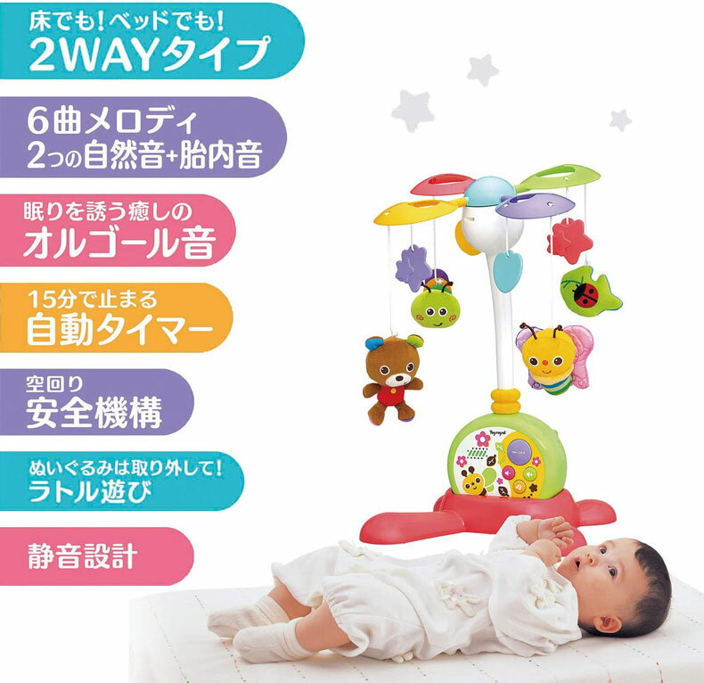 ずっと愛され続ける癒しのメリーが、バージョンアップ! 1. 床でもベッドでも使える2WAYタイプ スタンドを使用してフロアーメリーとしても、背面のベルトでベッドに取り付けてベッドメリーとしてもお使いいただけます。