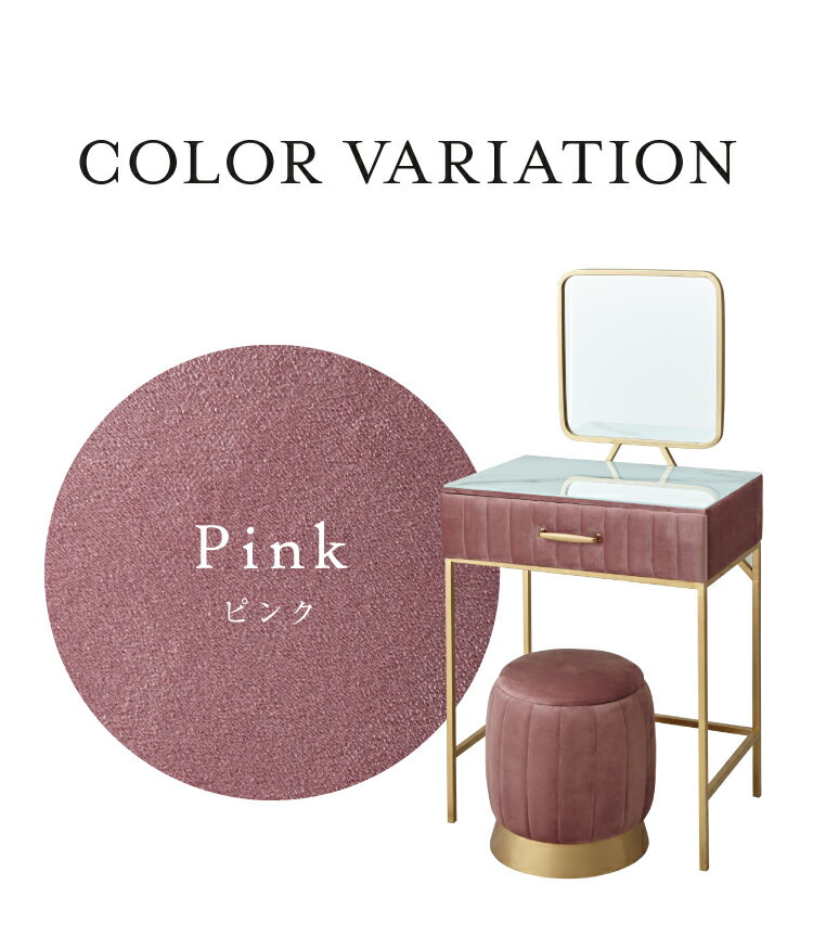 スツール付きドレッサーシリーズ1面 幅70cm1面 幅75cm3面 幅75cm3面 幅90cm1面 幅60cmベロア調 スクエアタイプ1面 幅60cmベロア調 ラウンドタイプ
