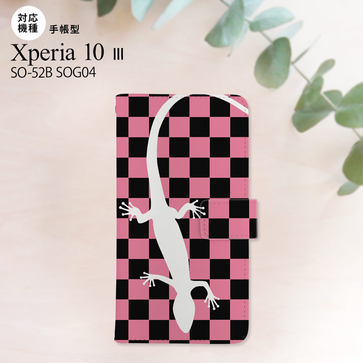 SO-52B SOG04 Xperia 10 III 手帳型スマホケース カバー トカゲ 市松 ピンク おしゃれ おすすめ 人気 スタイリッシュ スマート フォトジェニック nk-004s-xp103-dr863