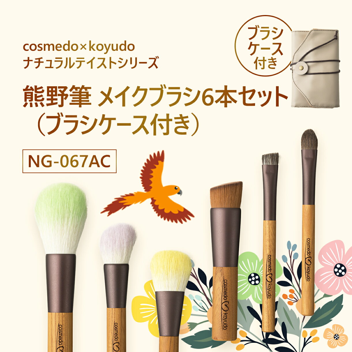 熊野筆 ナチュラルテイストシリーズ メイクブラシ6本+ブラシケースのセット(ブラシケース付き メイクブラシセット)【セット 熊野化粧筆 フェイスブラシ パウダーブラシ チークブラシ アイシャドウブラシ 化粧ブラシ かわいい】誕生日プレゼント ギフト おすすめ 日本製