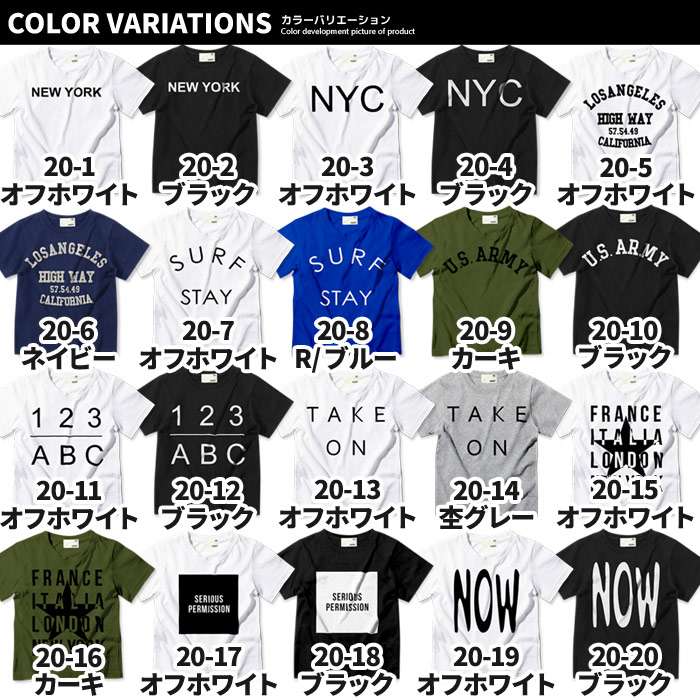 ●カラー展開●20color ●取扱いサイズ●キッズ :110cm/120cm/130cm/140cm/150cm/160cm レディース : M / L メンズ : M / L ●素材●綿100%※20-14杢グレーのみ綿85%レーヨン15%●実寸サイズ(単位/cm)●※平置き採寸サイズ KIDS SIZE 身幅 着丈 肩幅 袖丈 100 30 42 26 11 110 32 45 28 12 120 34 48 30 13 130 36 51 32 14 140 38 54 34 15 150 40 57 36 16 160 42 60 38 17 レディース SIZE 身幅 着丈 肩幅 袖丈 M 43 61 36 16 L 45 64 38 17 メンズ SIZE 身幅 着丈 肩幅 袖丈 M 50 67 44 20 L 52 70 46 21 ●ご注意事項● ◆サイズは平置き計測となっておりますので、1〜2cmの誤差が生じる場合がございます。