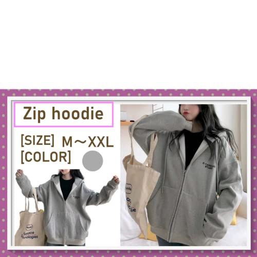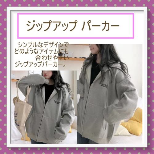[1/2plus(ニブンノイチプラス)] 長袖 裏毛 ゆったり 可愛い スウェット ジップ アップ パーカー レディース グレー