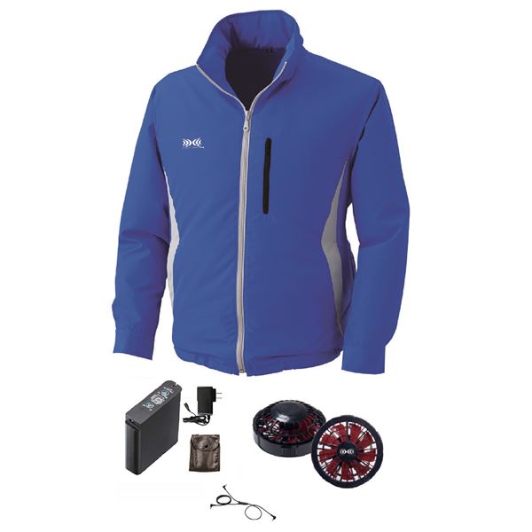 ポリエステル製 長袖 空調服/作業着 【ファンカラー:ブラック カラー:ブルー XL】 リチウムバッテリー付き LIPRO2 KU90510_送料無料
