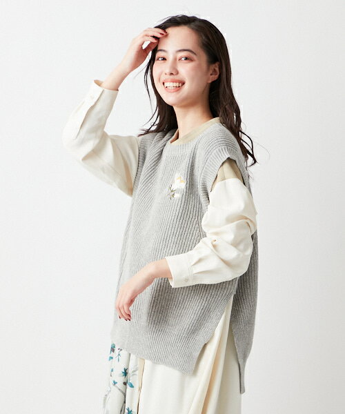 【SALE20%オフ】籠木蓮ニットベスト公式 ふりふ 可愛い 大正ロマン レトロ モダン ニット ベスト 着物 風 和 木蓮 モクレン 刺繍 和柄 カーデ オリジナル しっとり きれいめ レディース 使える コスパ 着回し カジュアル 和風 大人 20代 30代 40代 ビッグシルエット