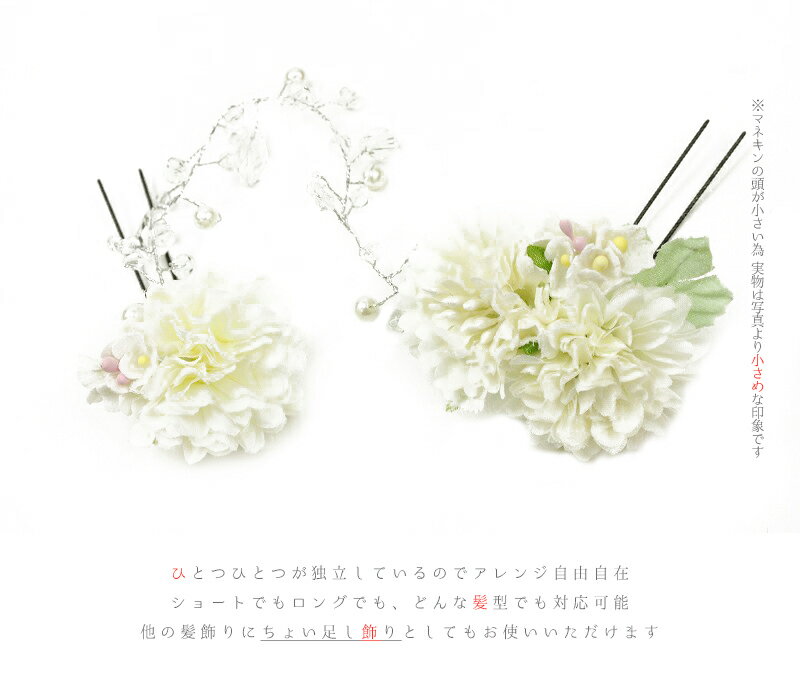 髪飾り 成人式 振袖 袴 2点セット 花 白 ガラスビーズ パール チャーム ヘアアクセ かんざし 簪 ヘッドドレス 卒業式 結婚式 入園式 卒園式 謝恩会 七五三 浴衣 パーティー No.9-3447 サイズ表 ≪花≫ 縦 約6cm × 横 約7cm × 高さ 約4cm ≪チャーム≫ 長さ 約20cm × 幅 約2.5cm ※飾り部分のみ計測しています。
