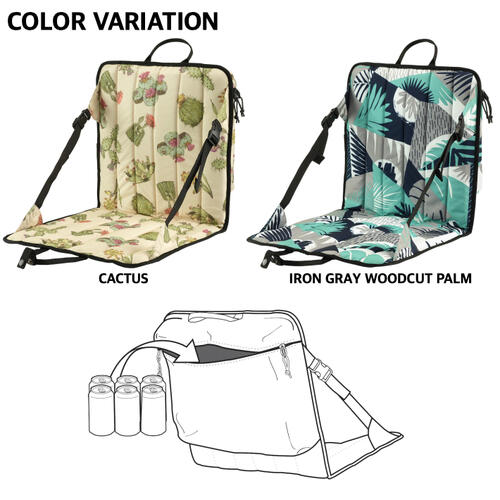 【ディテール】・超軽量&コンパクト・座り心地抜群・ドリンク缶6本が入る保冷スペースを備えた背もたれ・収納に便利なスナップボタンが付いたキャリーハンドル・ライフタイムワランティ対象【カラー】CUCTUS、IRON GRAY WOODCUT PALM【サイズ】<使用時>49cm x 42cm x 42cm【素材】600DプレーンウーブンポリエステルとPUの裏地【重量】900g