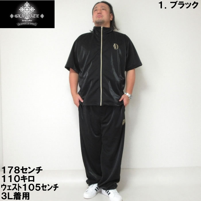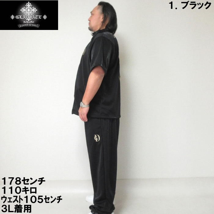 大きいサイズ メンズ GLADIATE-刺繍ラメ鹿の子半袖ジャージセット(メーカー取寄)グラディエイト 3L 4L 5L 6L 上下セット