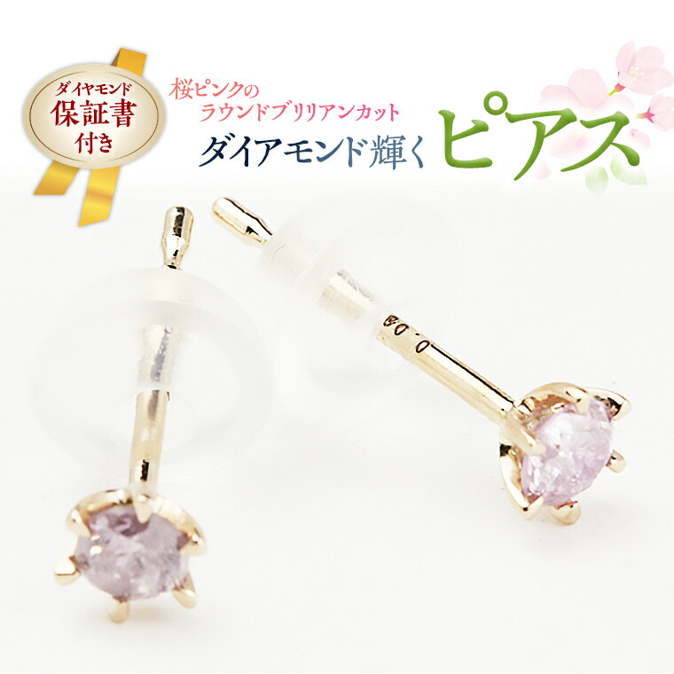 【ふるさと納税】桜ピンクのラウンドブリリアンカットピアス 【ピンクダイヤモンド】 ジュエリー ゴールド k18 ギフト 記念 贈り物